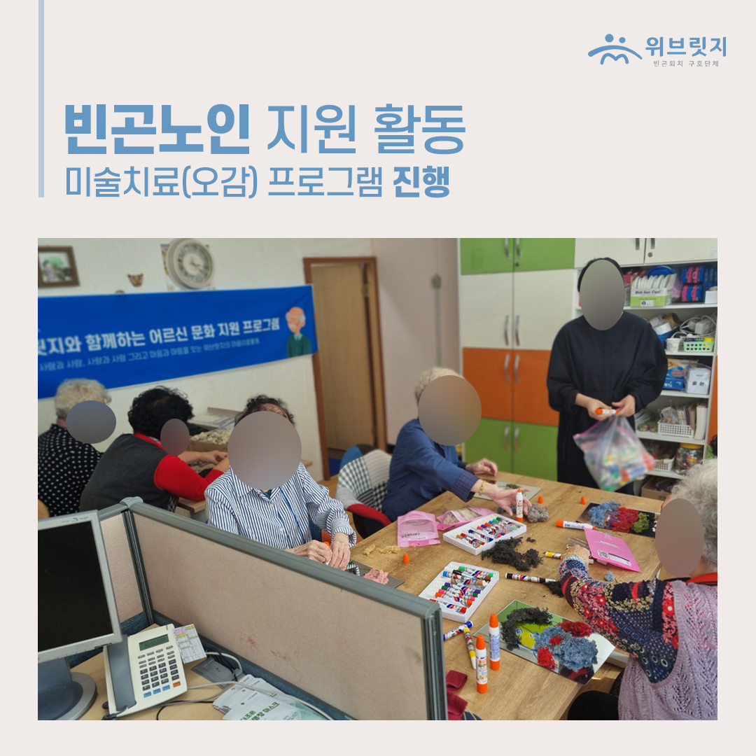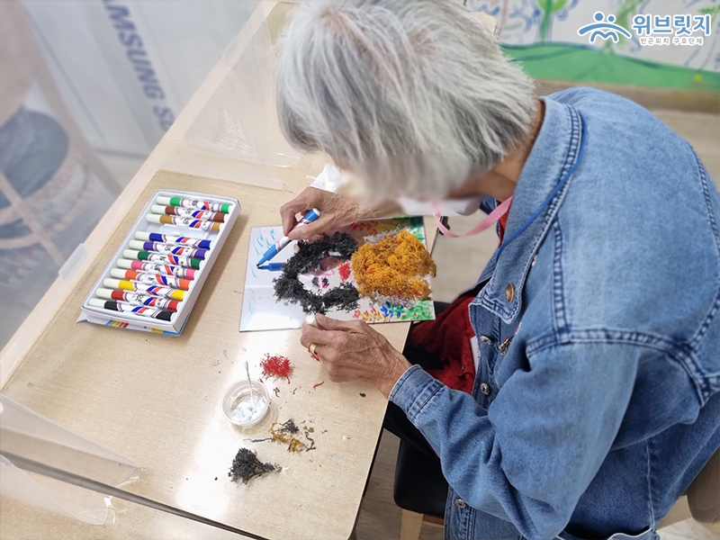 지난 9월, NGO단체 위브릿지는 저소득층 어르신들 중 우울경향이 있는 어르신을 대상으로 스트레스를 해소할 수 있는 미술치료를 진행했습니다.
