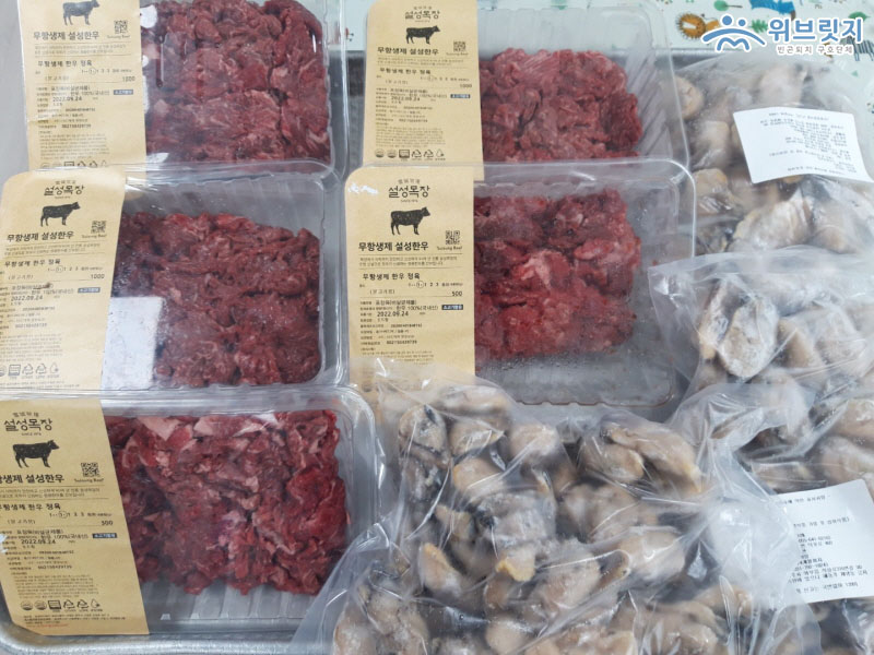 이번 식자재는 오징어채, 순살아귀, 피홍합, 냉동굴, 한우정육, 한우양지 등 다양한 해물, 육류 재료를 구입하여 보다 넓은 식감과 미각을 아이들이 맛볼 수 있도록 하였습니다.